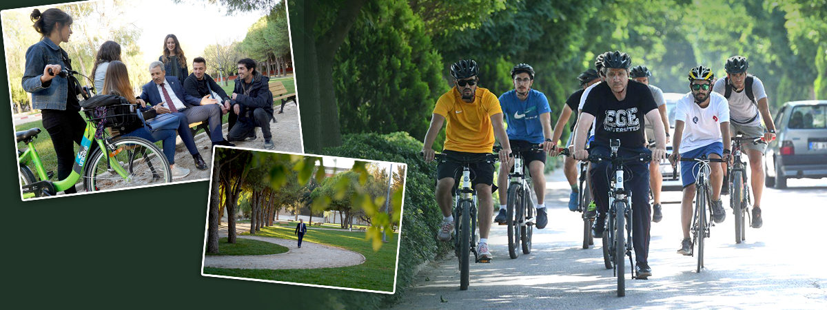 Ege Üniversitesinin sosyal, kültürel, sportif, çevresel ve bilimsel hayatına değer katan önemli projeler gerçekleştirdiklerini ifade eden Rektör Prof. Dr. Necdet Budak, Egeli gençlerin yeşil ve yaya öncelikli nitelikli bir üniversitede eğitim almaları için yoğun gayret gösterdiklerini söyledi. GreenMetric tarafından 2018 yılında yapılan değerlendirmede Ege Üniversitesinin 5075 total puanla, 719 üniversite içerisinde 287’inci sırada yer aldığını vurgulayan Rektör Prof. Dr. Budak, “Üniversitemiz Çevre Sorunları Uygulama ve Araştırma Merkezi aracılığıyla donanımlı çevre uzmanları yetiştiriyoruz. Toplumumuzu bilinçlendirme ve çevre bilincini geliştirilmesi amacıyla pek çok proje yürütüyoruz. Üniversite olarak her konumda ve koşulda çevre olgusunun doğasına uygun bir biçimde çok uzmanlı olarak bilgi üretimine özen gösteriyoruz” dedi.