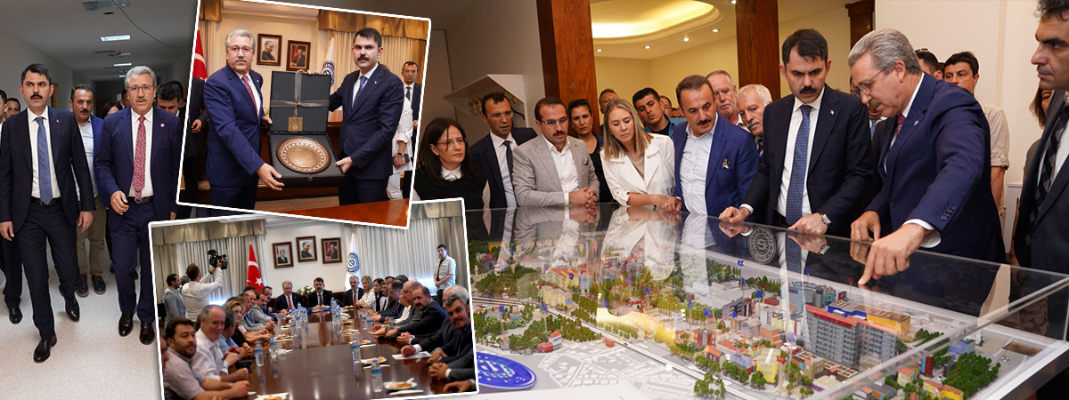 İzmir’de bazı programlara katılan Çevre ve Åžehircilik Bakanı Murat Kurum, Ege Üniversitesini (EÜ) de ziyaret etti. Bornova’daki Rektörlük hizmet binasında Bakan Kurum’u, EÜ Rektörü Prof. Dr. Necdet Budak, üst yönetim, dekanlar ve akademisyenler karşıladı. Rektör Budak, EÜ’nün yerleÅŸke planın bulunduÄŸu maketten, Bakan Kurum’a, üniversiteyle ilgili bilgiler verdi.