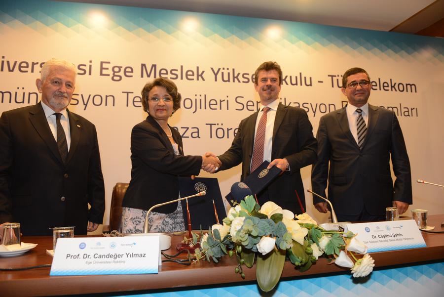Türk Telekom ve Ege Üniversitesi Meslek Yüksekokulu (Ege MYO) arasında 9 Mart 2016, ÇarÅŸamba günü Ege Üniversitesi Meslek Yüksek Okulu 55. Yıl Konferans Salonu’nda "Telekomünikasyon Teknolojileri Sertifikasyon Programları" iÅŸbirliÄŸi protokolü imzalandı. Düzenlenen protokol töreninin ardından Ege Üniversitesi Meslek Yüksek Okulu bünyesinde ‘’Telekomünikasyon Teknolojileri Uygulama Laboratuvarı’’laboratuvarı açıldı.