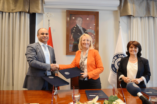 Ege Üniversitesi RektörlüÄŸü ile İzmir İl Milli EÄŸitim MüdürlüÄŸü arasında Fatih Projesi kapsamında hazırlanan EÄŸitim BiliÅŸim Ağı (EBA) projesi için etkileÅŸimli tahtalar ve mobil cihazlarda kullanılmak üzere dijital eÄŸitim içeriklerinin üretilmesini amaçlayan iÅŸbirliÄŸi protokolü imzalandı.