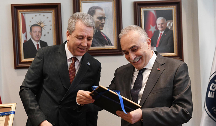 Ege Üniversitesinin ev sahipliÄŸinde düzenlenen toplantıya; Ege Üniversitesi Rektörü Prof. Dr. Necdet Budak, Dokuz Eylül Üniversitesi Rektör Vekili Prof. Dr. Erdal Çelik, İzmir Yüksek Teknoloji Enstitüsü Rektörü Prof. Dr. Mustafa Güden, İzmir Bakırçay Üniversitesi Rektörü Prof. Dr. Mustafa BerktaÅŸ, YaÅŸar Üniversitesi Rektör Yrd. Prof. Dr. Ali Nazım Sözer, İzmir Katip Çelebi Üniversitesi Rektör Yrd. Prof. Dr. Turan Gökçe, İzmir Ekonomi Üniversitesi Fen- Edebiyat Fakültesi Dekanı Prof. Dr. İsmihan BayramoÄŸlu ile İzmir Demokrasi Üniversitesi Hukuk Fakültesi Dekanı Prof. Dr. Cevdet Alptekin Kayalı katıldı.