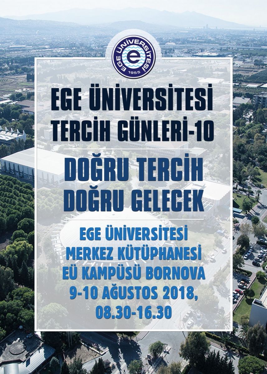 Ege Üniversitesi(EÜ), her yıl olduÄŸu gibi bu yıl da üniversite adayı gençlere Ege Üniversitesi’nin bölümlerini, eÄŸitim ve sosyal imkânlarını tanıtmak, gençlerin bilinçli tercihler yapmasına yardımcı olmak amacı ile tercih günleri etkinliÄŸi düzenliyor.